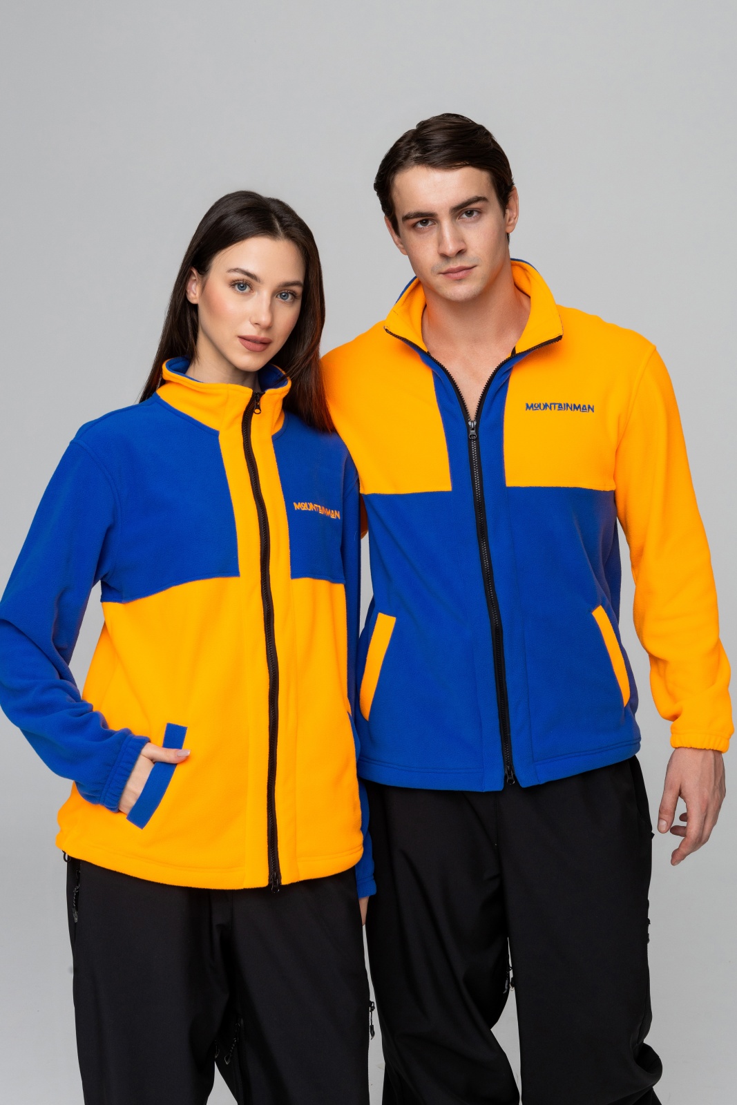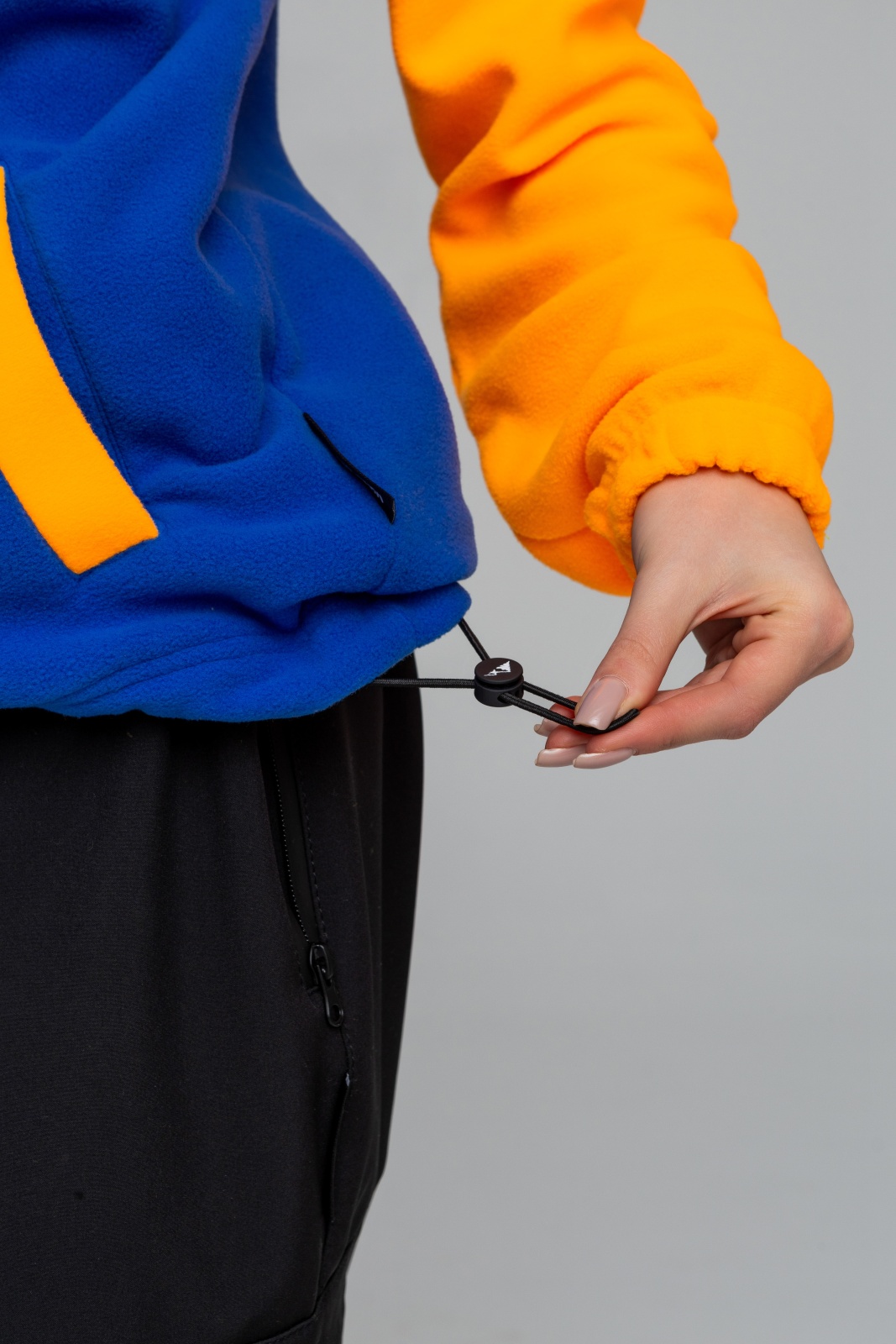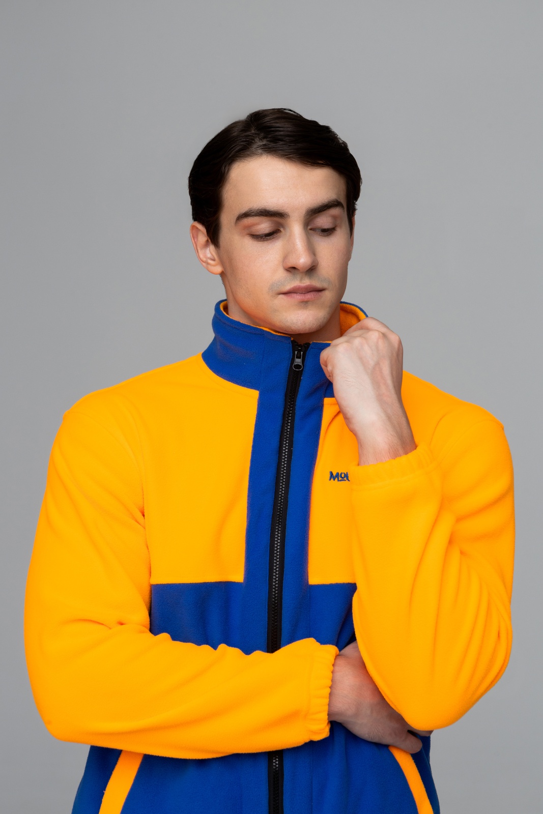 Универсальный крой подходит для мужчин и женщин. Флиску удобно носить как самостоятельный верхний слой в демисезон или как дополнительный утепляющий слой зимой. Контрастное сочетание оранжевого и синего делает образ ярким и запоминающимся.