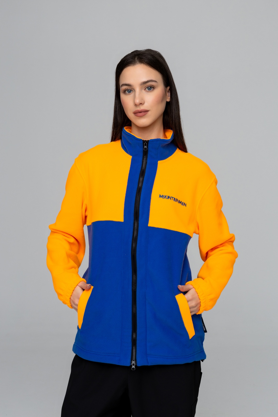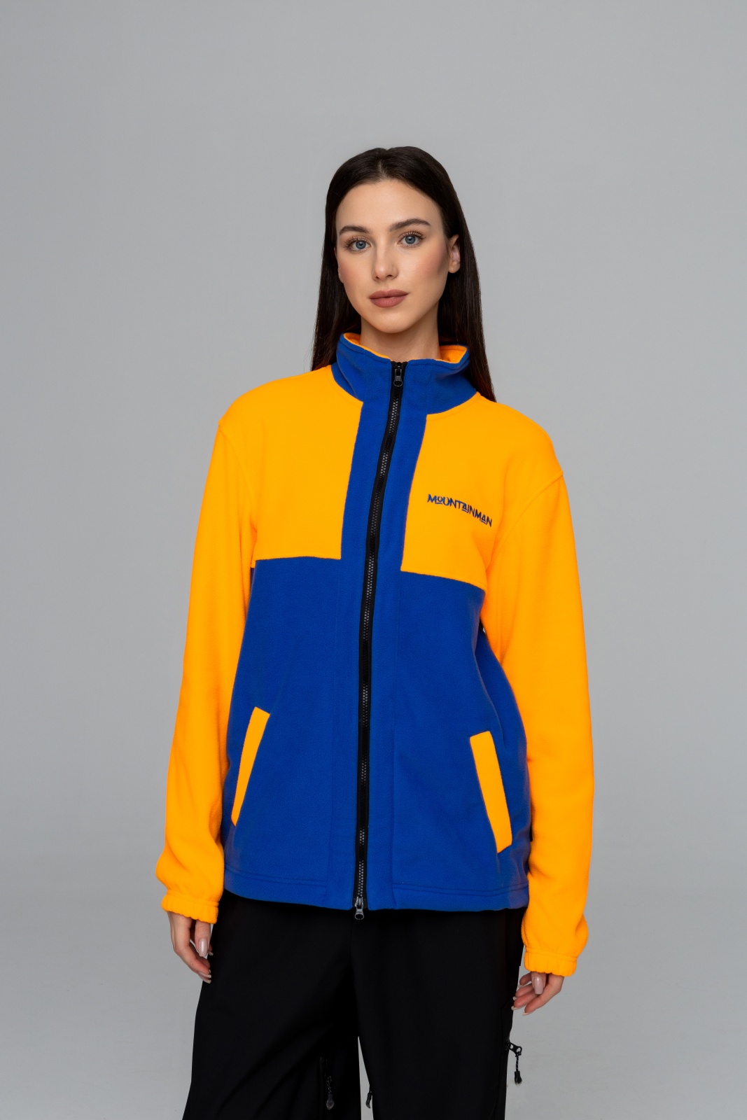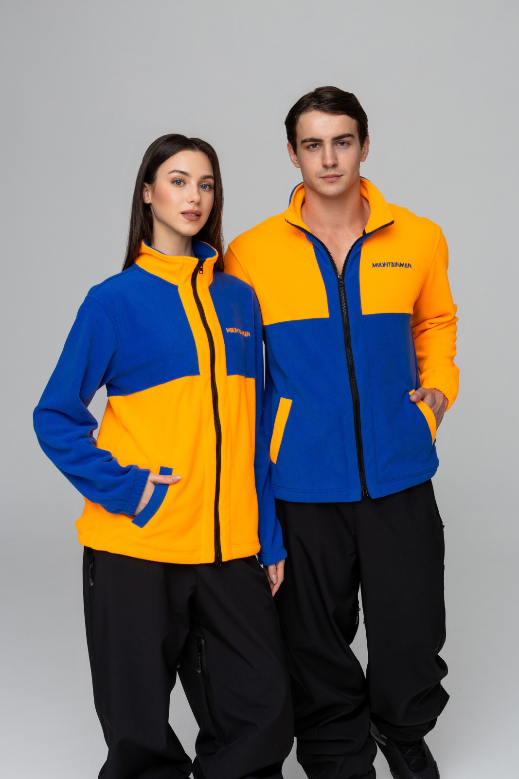 Универсальный крой подходит для мужчин и женщин. Флиску удобно носить как самостоятельный верхний слой в демисезон или как дополнительный утепляющий слой зимой. Контрастное сочетание оранжевого и синего делает образ ярким и запоминающимся.