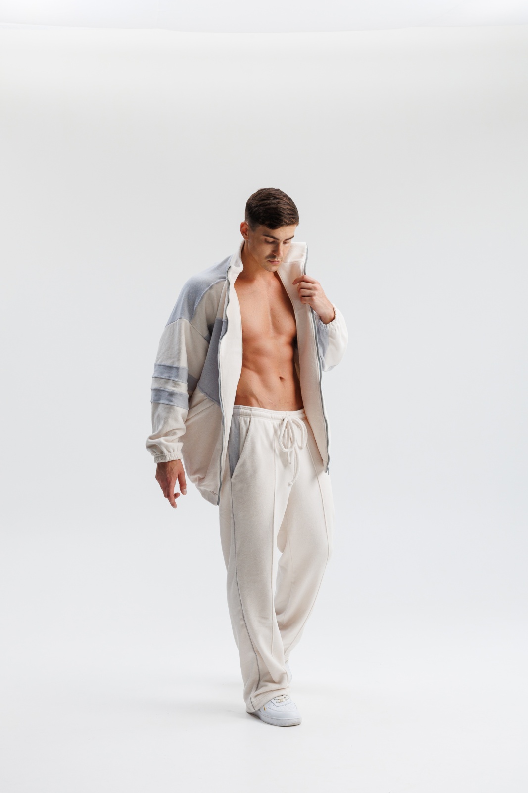 Костюм включает куртку на молнии с удобными карманами и брюки с эластичным поясом — комфорт в каждой детали.