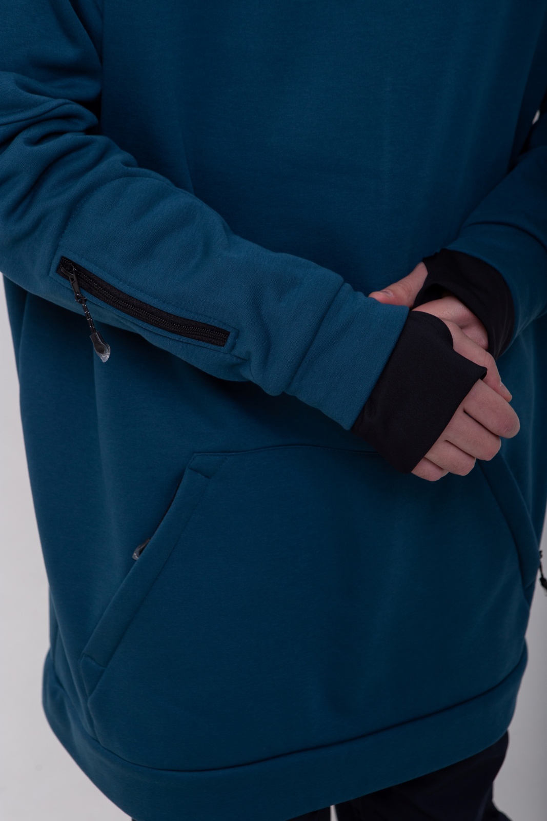 • Изготовлено из футера трёхниточного с начёсом плотностью 340 г/м² — сочетание мягкости хлопка и прочности полиэстера.