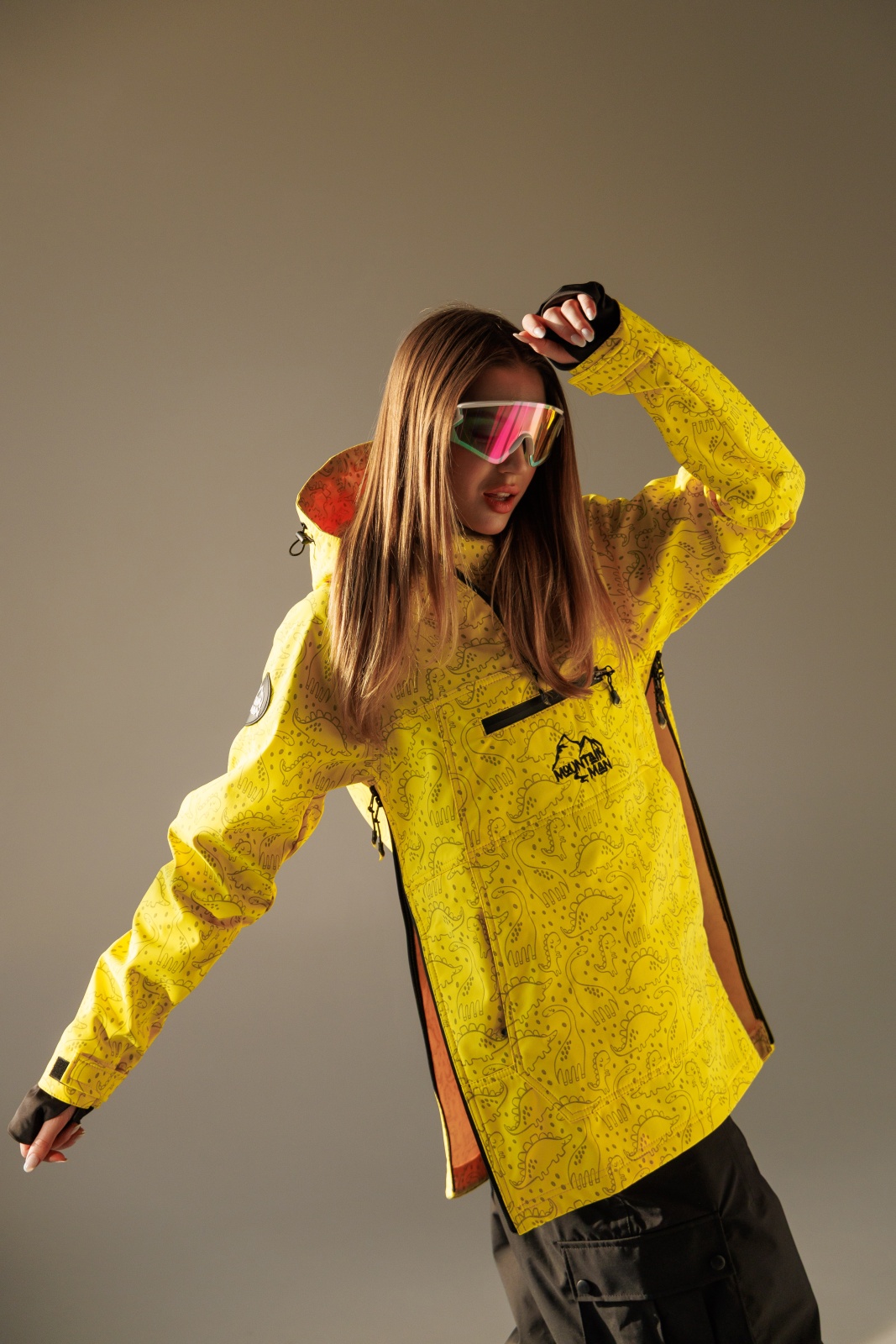 Горнолыжный анорак Жёлтый с принтом динозавров — стиль, тепло и настроение