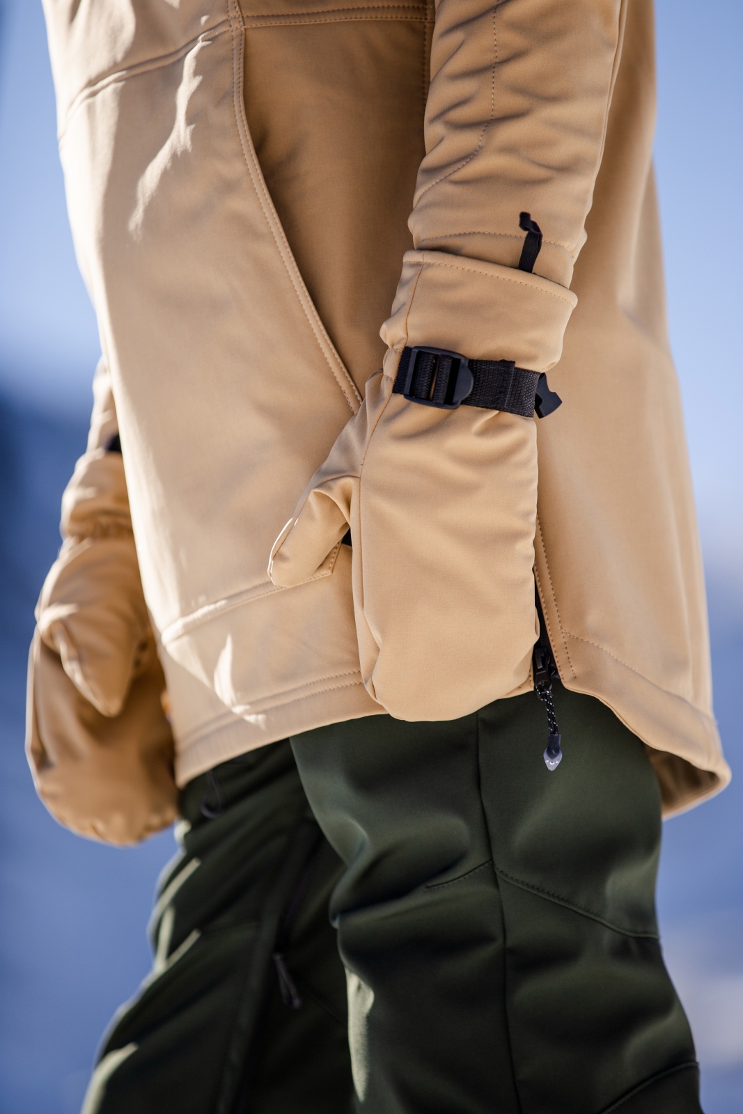 • Резинка и стропа на запястье: препятствуют попаданию снега внутрь варежек, обеспечивая дополнительную защиту.